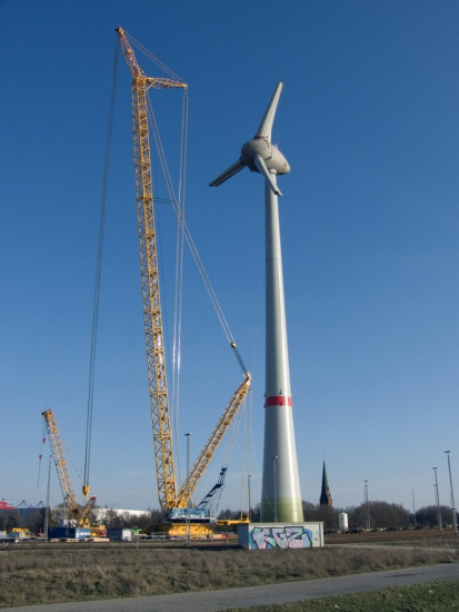 由德國Enercon公司製造E-126型風力渦輪機是當前世界上最大的風力渦輪機,該機組的轉子直徑達126米(413英尺),是最先裝機容量6MW的E-112型的改進版。E-126型風力渦輪機的裝機容量可達七兆瓦,足以為五千個歐洲家庭提供電能。最初的E-126部署在德國的愛姆登。
