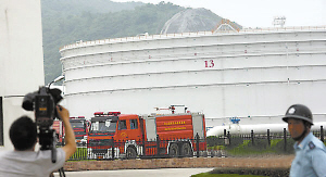 中國還將建設第三期石油儲備,最終目標是向發達國家的石油儲備要求靠攏。圖為6月3日,一名外國記者在浙江省鎮海國家石油儲備基地內拍攝。