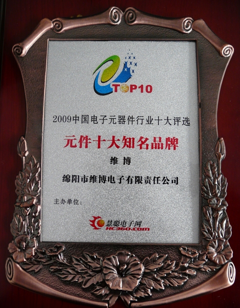 2009年是維博公司值的慶賀的一年年,在公司全體用工積極努力下,全年年度銷售指標已全麵完成,品牌建設更加深入。7月,維博喜獲慧聰電子網組織的2009年中國電子元器件行業十大風雲人物(阮賜元)、十大知名品牌(維博),11月1日,再獲“全國企業文化建設先進單位”,並獲得中國企業文化促進委員會頒發的獎牌。