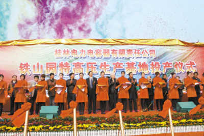 2009年12月19日,桂林電力電容器有限責任公司鐵山園特高壓生產基地舉行了聲勢浩大的投產儀式。桂容將成為年產全膜電容器5000萬千乏,電容式電壓互感器8000台的世界上最大電容器生產基地。