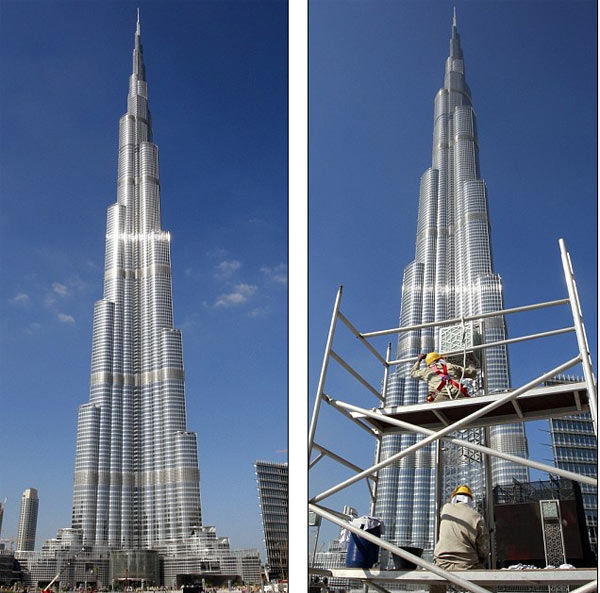 迪拜塔的落成曆時5年、耗資15億美元,這座160層的摩天大樓高達828米,可容納1.2萬人。828米的絕對高度使迪拜塔輕鬆刷新了中國台灣101大樓所保持的高508米世界紀錄。