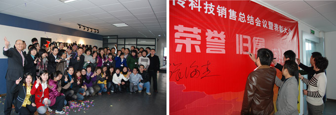2009年銷售業績喜人,國際國內經濟形式轉暖,同時業務團隊也對2009年的銷售工作不足的一麵進行了深刻的總結和檢討,展望2010年,大家對銷售目標充滿了信心。