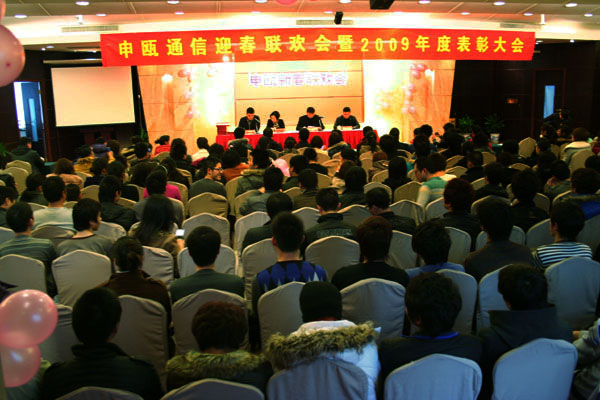 為表彰先進,增強全體職工的凝聚力。2010年2月2日申甌通信在萬豪商務酒店召開了2009年度表彰大會暨迎春聯歡會。