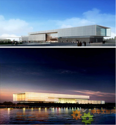 世博中心東西長約350米,南北寬約140米,總建築麵積約14.97萬平方米,建築群落由2個體塊組成,東部為多功能區,西側為會議區,東西之間為頂部相接的2層連廊,下部為挑空的視覺通廊。