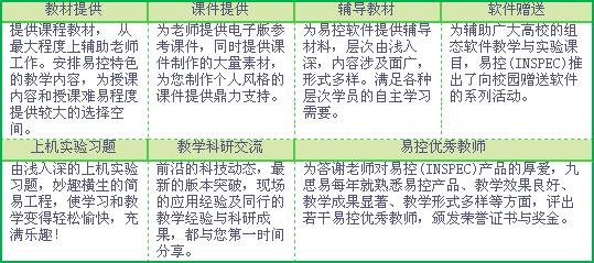 作zuo為wei一yi家jia極ji具ju創chuang新xin精jing神shen和he肩jian負fu重zhong任ren的de高gao科ke技ji公gong司si,九jiu思si易yi自zi動dong化hua軟ruan件jian一yi直zhi關guan注zhu並bing致zhi力li於yu教jiao育yu事shi業ye,支zhi持chi高gao校xiao人ren才cai培pei養yang,支zhi持chi學xue子zi實shi踐jian創chuang新xin。2009年推出“掌握未來 校園先行——易控走進校園大型係列活動” ,主要包括“校園科技”和“教學平台共建”兩部分,旨在與學子共同分享最新自動化行業信息和自動化軟件技術成果、工程實踐寶貴經驗,提供競賽、實習、就業機會,搭建校企交流平台,獎學獎教。主要內容包括: