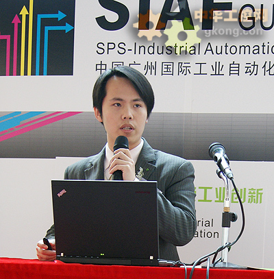 德國威琅電氣市場部高級現場應用工程師吳駿介紹威琅產品。