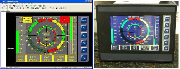 Judge’s comments: “Good use of 360 degree needles...good use of screen display area...good symmetry.” The application is a logging/monitoring system for a helicopter with turbine engine.