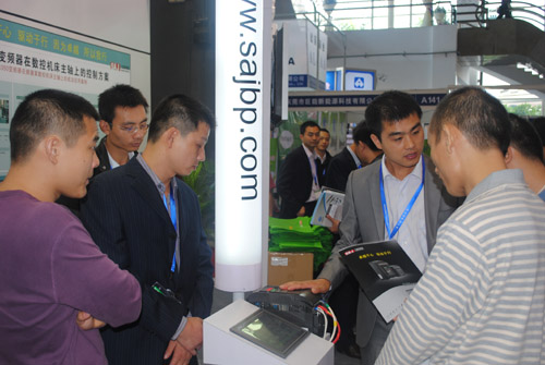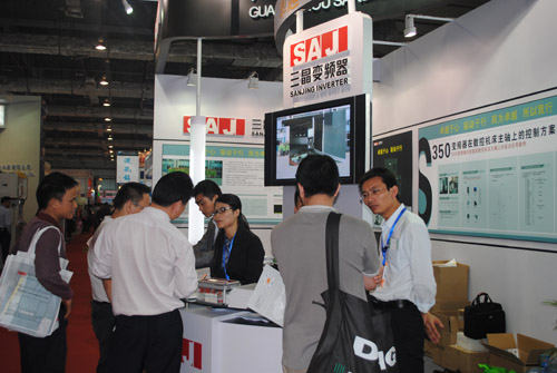 廣州三晶電氣有限公司攜自主研發的,具有國際領先水平的S350新一代電流矢量變頻器繼浙江寧波機床展之後再一次盛裝出席了本次展會。同時展出了S350係列變頻器在數控車床主軸控製上的應用解決方案。