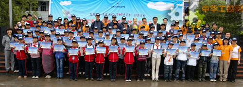參加典禮的受助學生與 Emerson 誌願者及當地政府相關領導合影