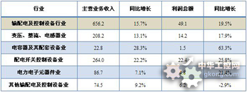 表:輸配電及控製設備行業及其子行業主營業務收入和利潤總額(單位:十億元)