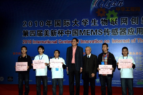 2010年10月28日——30日,為期3天的2010年國際大學生物聯網創新創業大賽暨第四屆美新杯中國MEMS傳感器應用大賽在無錫閉幕,來自全國各地及台灣和香港地區的80餘支代表隊在無錫太湖博覽中心進行了激烈角逐,最終來自北京大學及北京航空航天大學的“Freelancer動態交互係統”、華中科技大學的“基於加速度傳感器的文物自動保護裝置”、重慶大學的“窗寶”、鄭州大學的“魔力花”、南京理工大學的“踏浪鼠標”等五支高校代表隊脫穎而出榮獲特等獎,他們將代表中國參加明年六月舉行的第二屆微納米應用技術國際大賽。來自國防科技大學的“嬰語翻譯器”等12個作品獲得一等獎,大賽還評出二等獎、三等獎若幹名。