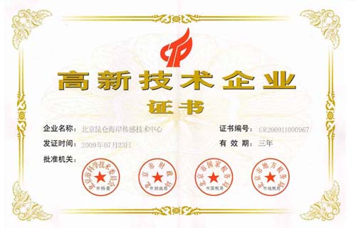 近日,北京昆侖海岸傳感技術中心再次獲頒由北京科學技術委員會、北京市財政局、北京市國家稅務總局、北京市地方稅務局聯合頒發的《高新技術企業證書》。