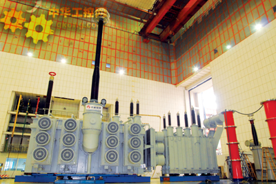 天威保變為世界上電壓等級最高、輸送距離最遠、輸送功率最大的直流輸電工程———向家壩—上海±800kV特高壓直流輸電示範工程研製的±800kV換流變壓器