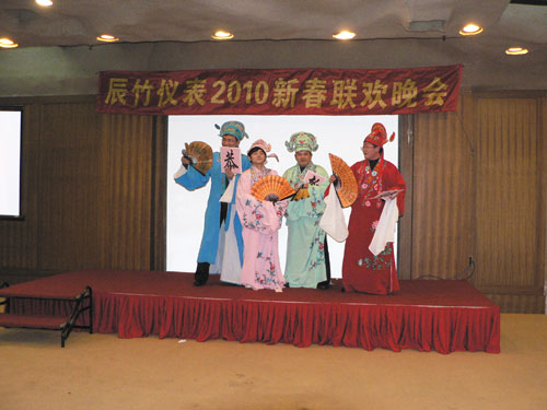 晚19:30,我公司員工自編自導自演的2010新春聯歡晚會正式拉開序幕。由技術部王睿和製造部張越聯袂主持,公司各部門精心組織排練節目,形式多樣:有小品、樂器演奏、獨唱、大合唱、遊戲等,好戲連台、精彩紛呈,引來現場掌聲與喝彩聲不斷。最後,銷售部《四大才子》與供應鏈《唐僧東遊記》獲得全體員工廣泛好評,被票選為“我最喜愛的春晚節目”。