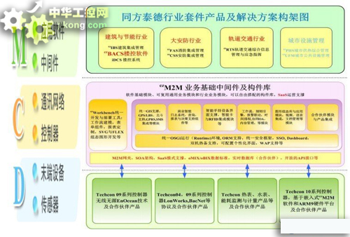 中國物聯網及綠色智能建築產業,要發展到美國企業那種以軟件(例如Honeywell 旗下的Tridium, Invensys 旗下的Wonderware,以及把物聯網業務上升到DRM(Device Relation Management)、 ERP 的Axeda,專做MMO 物聯網營運的Aeris, JasperWireless 等等,“全能型”的IBM 智慧地球戰略,微軟的OPC/.NET 等基礎技術自然不必多說)為業務和產值主體的模式還有很長的路要走,但如果這條路走成功則潛力巨大,軟件能力(軟實力)是提升“話語權”的重要基礎,軟件強則IT 強。目前同方泰德國際科技有限公司正全力以赴打造以智能建築和建築能耗監測(EMS/EPC 合同能源管理)為核心業務的MAI/EAI 中間件產品,配合其控製器係列產品,打造DCM 產品鏈條(下圖)和一站式軟硬件總體解決方案,最終走向SaaS/TaaS 營運。