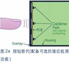 按鈕替代則是指完全采用電容式觸摸按鈕來替代中控麵板(module switch panel)上的所有機械按鈕(如圖2所示)。在此情況下,電容感應技術消除了機械設計在曲率、外覆層材料等方麵的限製,重要的是解決了複雜設計的製造工藝問題,從而極大地提供了設計靈活性。