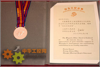 2010年12月17日,歐姆龍自動化(中國)有(you)限(xian)公(gong)司(si)董(dong)事(shi)長(chang)兼(jian)總(zong)經(jing)理(li)池(chi)添(tian)貴(gui)司(si)先(xian)生(sheng)榮(rong)獲(huo)了(le)上(shang)海(hai)市(shi)白(bai)玉(yu)蘭(lan)紀(ji)念(nian)獎(jiang),以(yi)表(biao)彰(zhang)他(ta)在(zai)推(tui)動(dong)工(gong)業(ye)自(zi)動(dong)化(hua)在(zai)中(zhong)國(guo)市(shi)場(chang)發(fa)展(zhan)方(fang)麵(mian)所(suo)做(zuo)出(chu)的(de)貢(gong)獻(xian)與(yu)努(nu)力(li)。