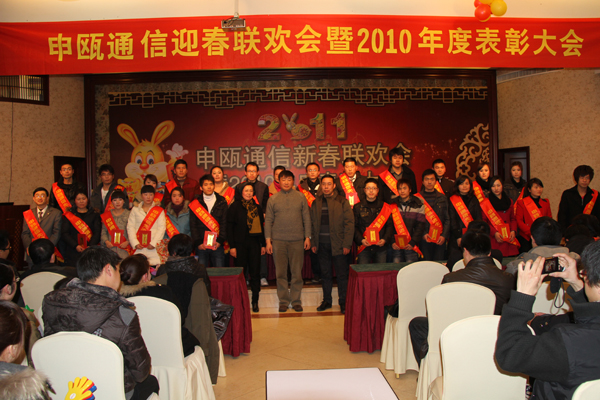 為表彰先進,增強全體職工的凝聚力。2011年1月20日申甌通信在金銀島大酒店隆重召開了2010年度表彰大會暨迎春聯歡會。