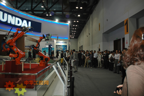 在展會現場,韓國現代懲戒首次展示了自主研發的機器人產品—焊接機器人HS165、YS0808;搬運機器人HH130L、弧焊機器人HA006,並以強大的陣容實物演示了現代機器人在汽車國體製造過程中的一係列作業流程。該係列機器人具有作業空間範圍大、動作敏捷、性能穩定等特點。