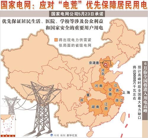 核心提示:始於3月的“電荒”愈演愈烈,由最初局限於江蘇、浙江等地,逐漸遍布江西、廣東、湖南、湖北、安徽、河南、陝西等省,缺煤停機、限產限電現象此起彼伏,“電荒”範圍正由局部向更大範圍蔓延。
