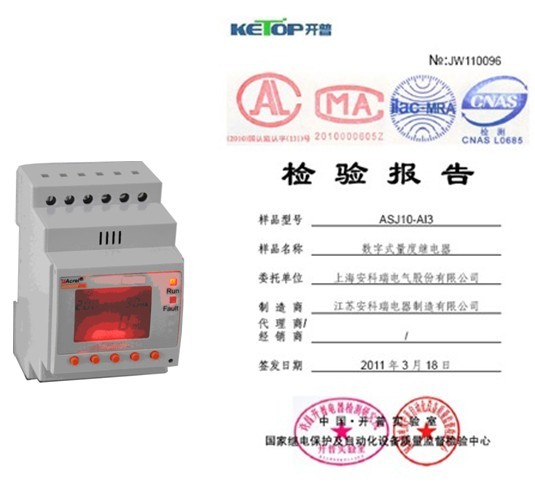 2011年3月10日,公司研製的ASJ10-AI3數字式量度繼電器通過國家繼電保護及自動化質量監督檢驗中心型式試驗,報告編號NO.:JW110097。同時,該產品也獲得中電協繼電保護及自動化設備分會技術標準中心頒發的產品型號使用證書,證書編號NO.2011091。