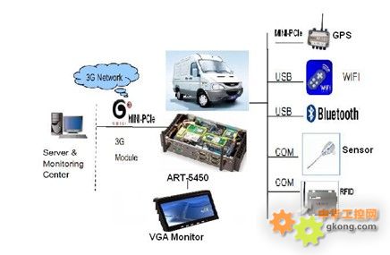 基於這種現狀某公司采用威盛專業車載電腦ART-5450 開發的物聯網冷藏疫苗車智能監控係統,基於物聯網的概念,利用先進的RFID技術,傳感器技術,GPS技(ji)術(shu)等(deng)無(wu)線(xian)通(tong)訊(xun)技(ji)術(shu)組(zu)成(cheng)一(yi)個(ge)物(wu)聯(lian)網(wang)冷(leng)藏(zang)車(che)遠(yuan)程(cheng)智(zhi)能(neng)監(jian)控(kong)係(xi)統(tong),可(ke)以(yi)實(shi)時(shi)監(jian)控(kong)疫(yi)苗(miao)冷(leng)藏(zang)車(che)廂(xiang)內(nei)的(de)溫(wen)度(du),門(men)開(kai)關(guan)狀(zhuang)態(tai),疫(yi)苗(miao)的(de)信(xin)息(xi)及(ji)定(ding)位(wei)車(che)輛(liang)的(de)位(wei)置(zhi),實(shi)現(xian)整(zheng)個(ge)運(yun)輸(shu)過(guo)程(cheng)的(de)全(quan)程(cheng)監(jian)控(kong)與(yu)可(ke)追(zhui)溯(su)性(xing)。為(wei)人(ren)們(men)提(ti)供(gong)放(fang)心(xin)可(ke)靠(kao)的(de)疫(yi)苗(miao)。客(ke)戶(hu)選(xuan)用(yong)威(wei)盛(sheng)專(zhuan)業(ye)車(che)載(zai)電(dian)腦(nao)ART5450的原因是因為威盛專業車載電腦ART-5450支持耐震(5G)與抗衝擊(50G)的設計,支持CF卡安裝XPE操作係統和零下20℃到70℃的工作溫度滿足車載電腦對抗震和寬溫的要求,另外ART-5450支持2 Mini-PCIe 插槽可接3G/GPRS和GPS模塊,通過3G和GPS實現與控製中心的無線通訊以及冷藏疫苗車的實時定位管理,通過COM口讀取溫度傳感器的信息對車廂內的溫度實時監控和記錄以及報警等功能。另外通過COM口與RFID 射頻接收器通訊讀取疫苗的生產廠家,生產日期,生產批次的信息。威盛專業車載電腦支持7-36V直流電壓輸入,可選擇更加精密的電源管理模塊,包括延遲啟動功能,軟件開關程序,便於係統的維護和升級。