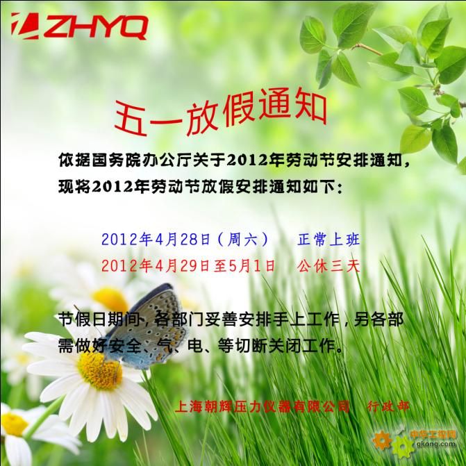 朝輝5.1勞動節放假通知