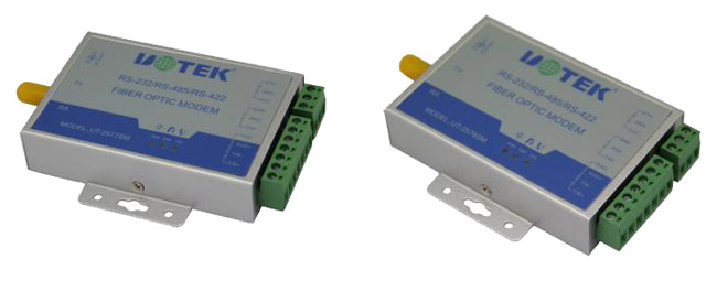 UT-2577/2578的RS-485方式支持數據(TXD或SD)發送控製,從而提高了適應各類軟件的能力,也簡化了控製方式,光纖MODEM支持異步串行口之間的多種光纖連接方式,它支持兩個異步串行口的設備通過光纖進行全雙工或半雙工通信,通信距離最遠可達多模4公裏,單模20公裏,RS-232信號的傳輸速率最高為115.2KBPS,RS-485/RS-422的信號傳輸速率最高可達460KBPS,不同電氣標準的接口可以混合使用,可以用RS-232的設備去連接RS-485/RS-422的設備,可以代替RS-232到RS-485/422接口轉換器或光電隔離器,並提供了優良的EMI/RFT特性。