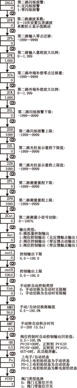 ②PV第一路外給定輸入分度號/③SV第二路閥位反饋輸入分度號 |