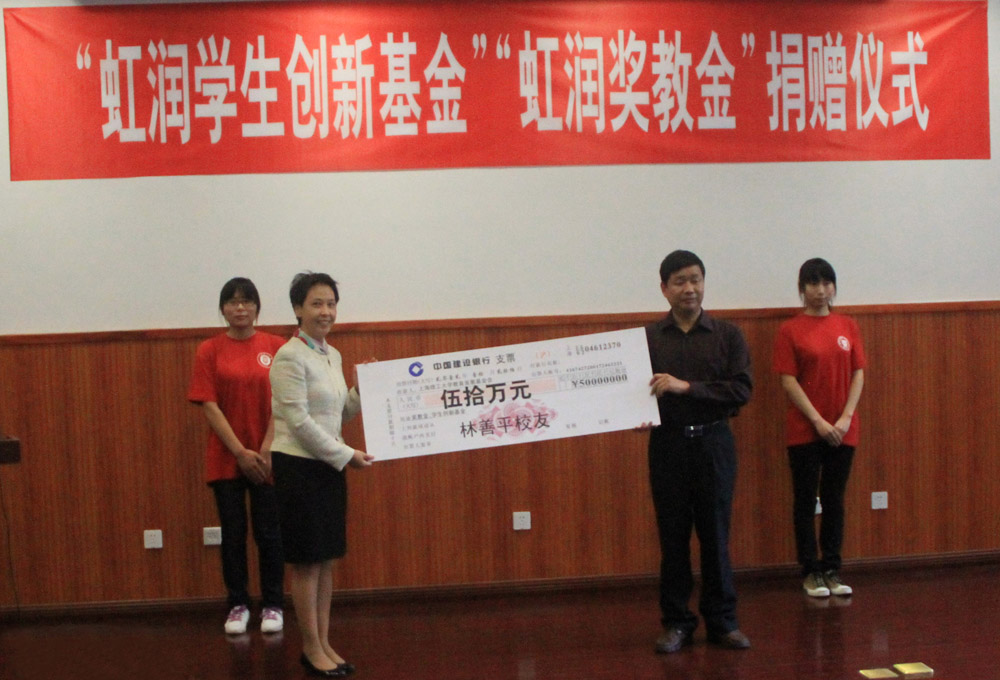 10月26日下午,虹潤精密儀器有限公司董事長林善平校友,向我校教育發展基金會捐贈50萬元,設立“虹潤學生創新基金”、“虹潤獎教金”,捐贈儀式暨“尚理校友講壇”在格致堂201報告廳舉行。光電學院院長莊鬆林院士、校友工作聯絡處、光電學院負責人以及師生代表出席儀式。會前,莊鬆林院士等與林善平校友進行了親切的會談,就校企間產學研合作進行了充分交流。
