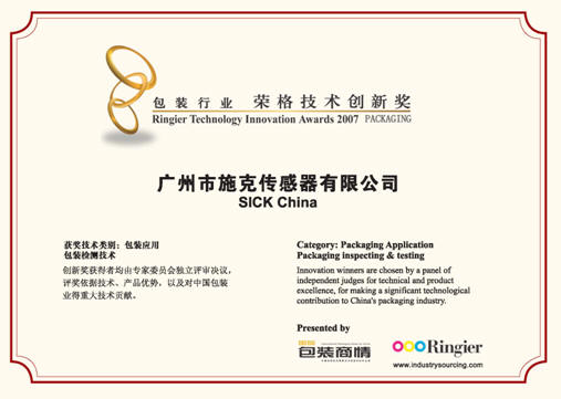經過用戶推薦和專家公正評審,擁有超過60年nian生sheng產chan研yan發fa傳chuan感gan器qi曆li史shi的de施shi克ke公gong司si憑ping借jie在zai包bao裝zhuang行xing業ye多duo年nian積ji累lei的de深shen厚hou技ji術shu實shi力li,為wei客ke戶hu帶dai來lai了le成cheng熟shu領ling先xian的de產chan品pin和he優you質zhi的de服fu務wu,並bing將jiang領ling先xian業ye界jie的de行xing業ye解jie決jue方fang案an理li念nian帶dai入ru中zhong國guo,對dui中zhong國guo包bao裝zhuang行xing業ye的de自zi動dong化hua進jin程cheng做zuo出chu了le重zhong大da貢gong獻xian,榮rong獲huo“2007包裝行業榮格技術創新獎”。