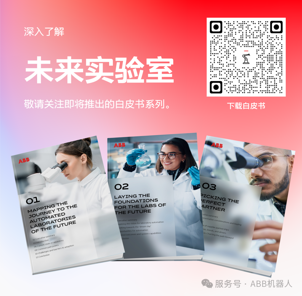 近日,ABB機器人聯合梅特勒托利多在全球發布了《通往未來自動化實驗室之路》係列白皮書首篇。該白皮書基於對生物工程、製藥、化工、新能源及電子領域的專業人士的“客戶之聲”深度調研,係統地梳理了實驗室自動化的應用現狀、主要障礙與核心驅動力。