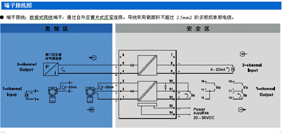 1. ÓÃÓÚ¼¯¼ì²âºÍ²Ù×÷¹¦ÄÜÓÚÒ»ÌåµÄ¸ôÀëʽ°²È«Õ¤µÄÓ¦Óᣠ2. ͨµÀ1ÊÊÓ¦ÓÚÁ¬½ÓÖÁÏÖ³¡µÄÉ豸£º¶þÏßÖÆ±äËÍÆ÷¡¢µçÁ÷Ô´ Ðźš£Í¨µÀ2ÊÊÓ¦ÓÚÁ¬½ÓÖÁÏÖ³¡µÄÉ豸£º·§ÃŶ¨Î»Æ÷¡¢µç Æø×ª»»Æ÷ÒÔ¼°ÆäËü±¾°²ÏÔʾÉ豸¡£ 3. ÏÖ³¡É豸Ëù´¦ÇøÓò£º0Çø¡¢1Çø¡¢2Çø£»IIAÇø¡¢IIBÇø¡¢ IICÇø£»T4¡«T6ΣÏÕÇø¡£