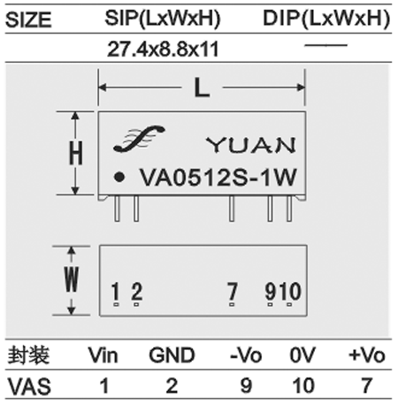 VA0512S-1W¡¡¡¡4.5-7.25VDC¡¡ ¡À12VDC¡¡¡¡¡À42mA¡¡¡¡74%