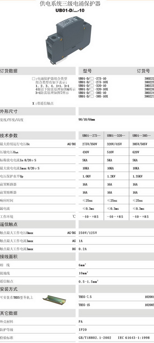 UBO1-D/10 ¹©µçϵͳÈý¼¶µçÓ¿±£»¤Æ÷