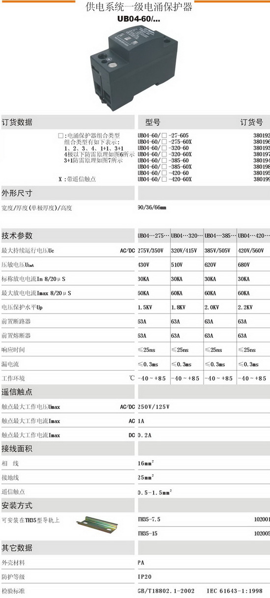¡ú UBO4-60 ¹©µçϵͳһ¼¶µçÓ¿±£»¤Æ÷