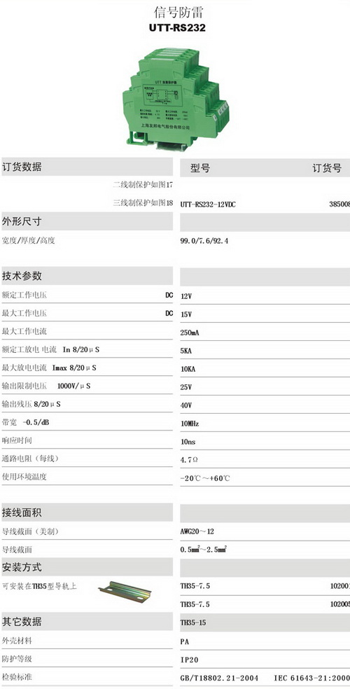 ¡ú UTT-RS232 ÐźŷÀÀ×µçÓ¿±£»¤Æ÷
