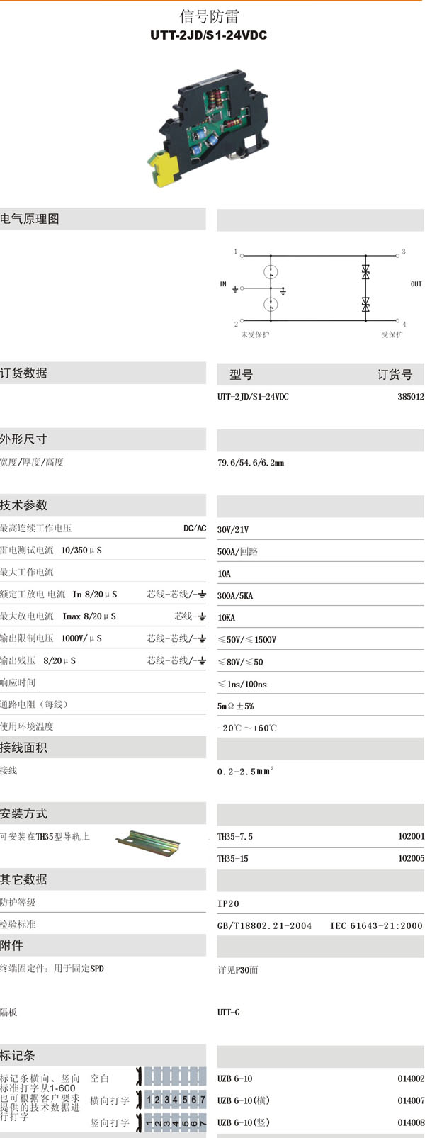 ¡ú UTT-2JD/S1-24VDC ÐźŷÀÀ×µçÓ¿±£»¤Æ÷