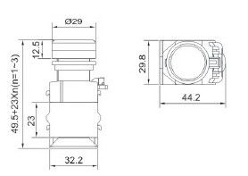 3.ÐͺžÙÀý£º1³£¿ª+1³£±Õ´¥µã£¬ºìɫһ°ãÅ¥ÐͺÅΪ£ºLA130-22D-11/R£»