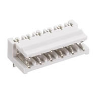 Angular socket board, solder pins single row, stringable without loss of pitch