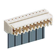 Connector for direct mating, insulation displacement technology (IDT), with locking on printed circuit board by means of lateral locking hooks, with keying rib, contact spacing 5.0 mm, for ribbon cable