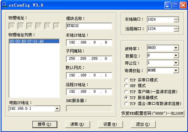 ÔËÐв¨Ê¿²úÆ·¹âÅÌÉϵÄCRConfigv30.exe¡£°´¡°ËÑѰ"£¬³öÏÖÁ˲¨Ê¿ÒÔÌ«Íø/´®¿Úת»»Æ÷£¬Èçͼ2¡£Ð޸ġ°±¾µØIPµØÖ·"£¬±ÈÈç192.168.0.9£¬ÒÔÃâÓëÁíÍâÒ»¸ö²¨Ê¿ÒÔÌ«Íø/´®¿Úת»»Æ÷IPµØÖ·³åÍ»¡£(Èçͼ3)