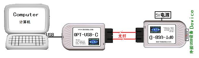 ³É¶ÔʹÓõÄOPT-USBÐ͵ĹâÏËÑÓ³¤Æ÷·ÖΪԶ¶ËDÐÍ£¨DeviceÐÍ£¬½ÓÉ豸£©ºÍ½ü¶ËCÐÍ£¨ComputerÐÍ£¬½Ó¼ÆËã»ú£©¡£Ô¶¶ËDeviceÐ͵ÄUSB¿ÚΪAÐÍUSB×ù£¨¾ÍÊÇͬ¼ÆËã»úµÄUSB²å×ùÒ»Ñù£©£¬¿ÉÒÔÖ±½ÓÍâ²å¸÷ÖÖUSBÉ豸£¬ÐèÒª5V¹©µç¡£½ü¶ËComputerÐ͵ÄUSB¿ÚΪBÐÍUSB×ù£¨¾ÍÊÇͬUSB´òÓ¡»úµÄUSB²å¿Ú£©£¬Í¨¹ýUSB´òÓ¡Ïß½Óµ½¼ÆËã»úµÄUSB¿Ú£¬ÎÞÐ蹩µç¡£Ô¶¶ËDÐÍ(Device)Óë½ü¶ËCÐÍ(Computer)²úÆ·ÍâÐÎÉÏÊÇÒ»ÑùµÄ¡£Ô¶¶ËDÐÍÓë½ü¶ËCÐÍÖ®¼äÓÃ2¸ù¹âÏËÏàÁ¬£¬×¢ÒâTX-RX¹â¿Ú½»²æÁ¬½Ó¡£OPT-USBĿǰÌṩST¡¢SC¹â¿Ú£¬¿ÉÒÔͨ¹ý¹âÏËÌøÏßת»»ÎªFC¿Ú¡£²¨Ê˵ç×ÓÅäÌ×Ìṩ¸÷ÖÖ³¤¶È¹âÏËÒÔ¼°ST¡¢FC¡¢SC½ÓÍ·¡£