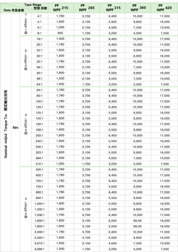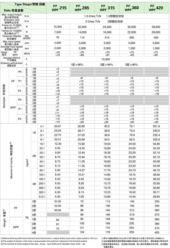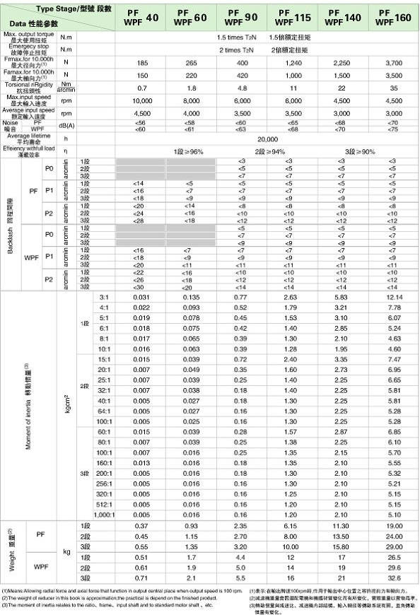 PF/WPF precision planetary gear boxes technical data PF/WPF ϵÁо«ÃÜÐÐÐǼõËÙ»ú¼¼Êõ²ÎÊý |