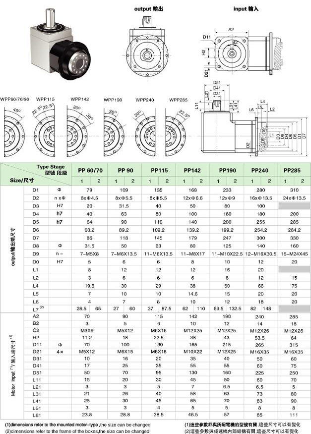 PP/WPP precision planetary gear boxes technical data PP/WPP ϵÁо«ÃÜÐÐÐǼõËÙ»ú¼¼Êõ²ÎÊý |
