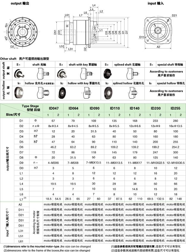 ID precision planetary gear boxes technical data ID ϵÁо«ÃÜÐÐÐǼõËÙ»ú¼¼Êõ²ÎÊý |