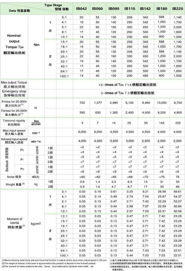IBR precision planetary gear boxes technical data IBR ϵÁо«ÃÜÐÐÐǼõËÙ»ú¼¼Êõ²ÎÊý |