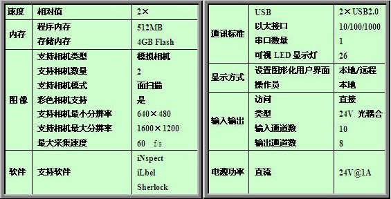 *Ö§³ÖË«Ïà»ú£¨×î´óÖ§³Ö1376X1035ÏñËØ£© *¿ÉÒÔÖ±½ÓÁ¬½ÓÏÔʾÆ÷¹Û²âÔËÐÐ״̬ *RS232¼°ÒÔÌ«ÍøÍ¨Ñ¶½Ó¿Ú *ÄÚǶiNspectºÍSherlock¼ì²âÈí¼þ *Ìṩ¶þ´Î¿ª·¢½Ó¿Ú *СÇɽô´ÕµÄDINµ¼¹ìʽ°²×°·½Ê½