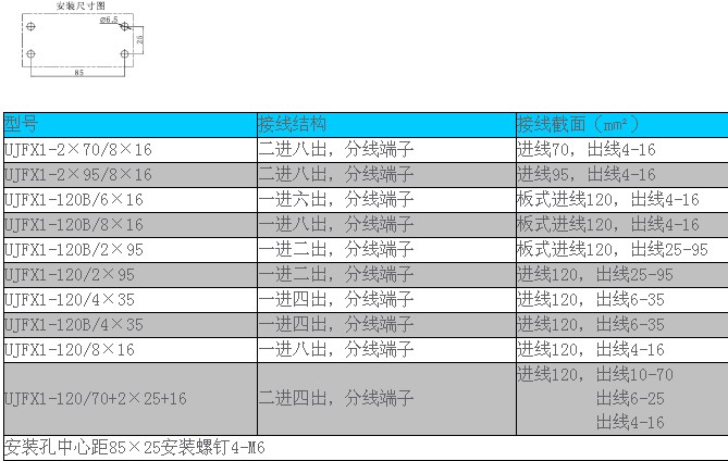 UJFX1-120B/6¡Á16 ´óµçÁ÷·ÖÏß¶Ë×Ó
