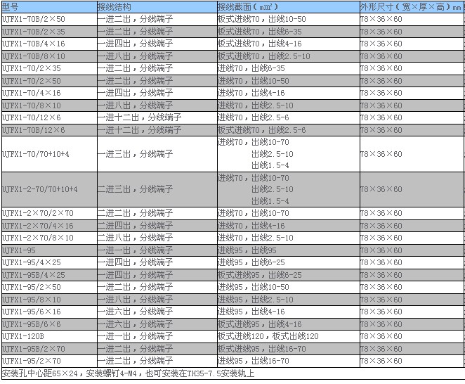UJFX1-70B/2¡Á50 ´óµçÁ÷·ÖÏß¶Ë×Ó